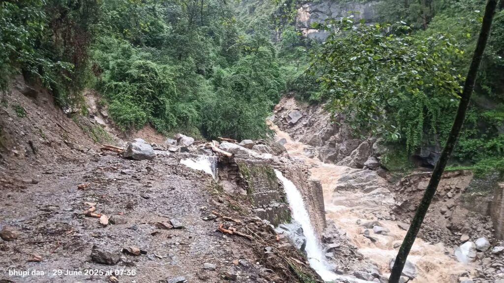 पहाड़ों में लगातार आसमान से आफत बरस रही है। आम जन जीवन पर इसका बुरा असर पड रहा है। जनपद की बांगर पट्टी में बारिश ने खूब तांडव मचाया है। शनिवार रात से लगातार हुई बारिश के कारण रविवार सुबह मयाली-रणधार मोटरमार्ग पर मुन्याघर के निकट स्थित गदेरे में बादल फटने से मोटरपुल बह गया, जबकि चौंरा के निकट पहाड़ी टूटने से मोटरमार्ग का एकद बड़ा हिस्सा पूरी तरह से ध्वस्त हो गया। मोटरमार्ग पर पूरी तरह से आवाजाही ठप्प पड़ी हुई है। बांगर पट्टी के एक दर्जन से अधिक गांवों की आवाजाही का यह मोटरमार्ग मुख्य साधन है।