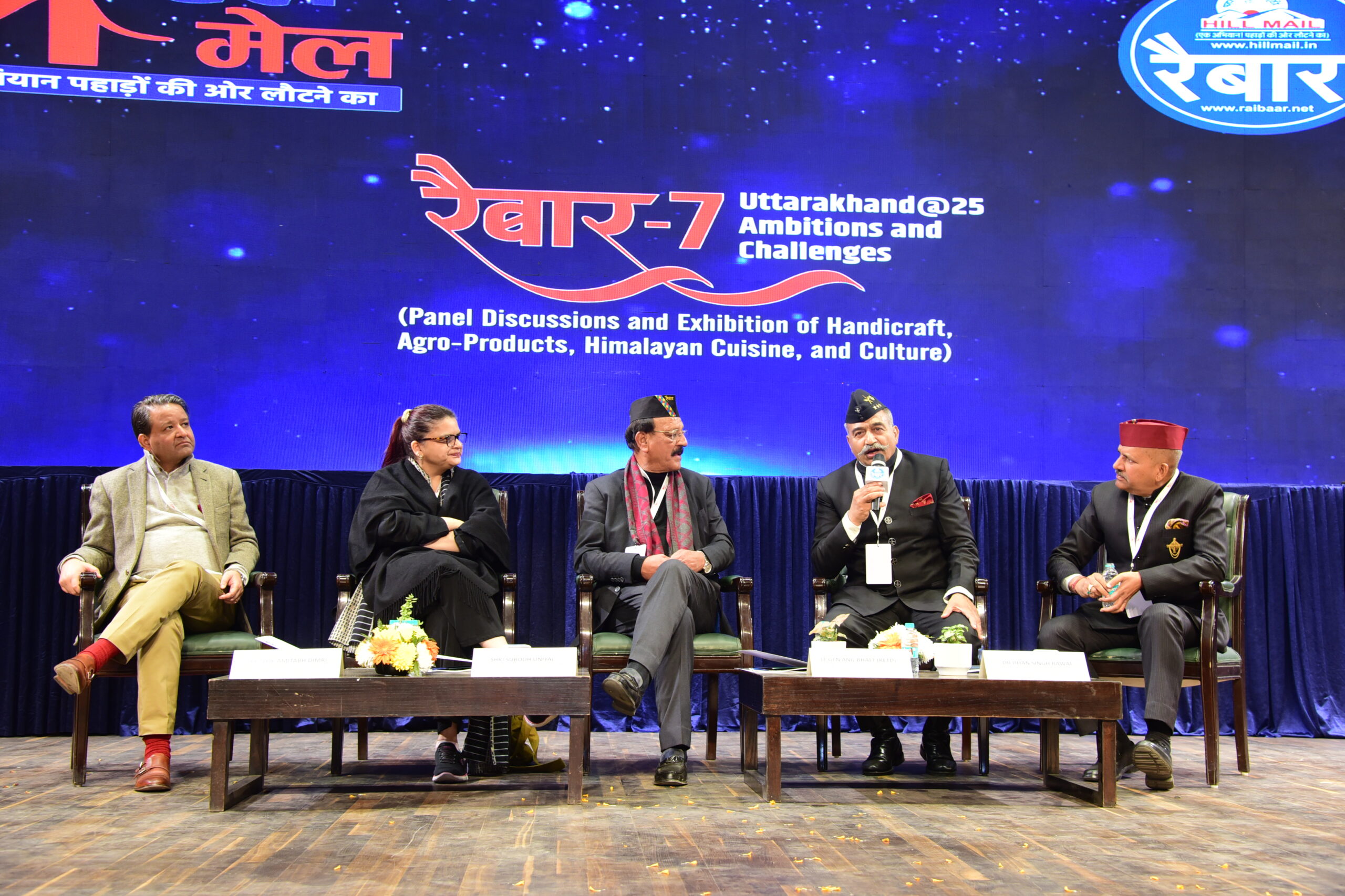 उत्तराखंड की संस्कृति, संभावनाओं और विकास के प्रति समर्पित प्रतिष्ठित मीडिया संस्थान हिल-मेल द्वारा 17 जनवरी को नई दिल्ली स्थित मावलंकर सभागार में ‘रैबार -7’ कार्यक्रम का भव्य आयोजन किया गया जिसमें मुख्य अतिथि राष्ट्रीय सुरक्षा सलाहकार अजीत डोभाल, विशिष्ठ अतिथियों में प्रमुख भारतीय सशस्त्र सेना रक्षा प्रमुख (सीडीएस) जनरल अनिल चौहान, लेफ्टिनेंट जनरल डीजी असम राइफल्स विकास लखेड़ा, हरिद्वार लोकसभा सांसद एवं पूर्व मुख्यमंत्री उत्तराखंड त्रिवेंद्र सिंह रावत, पौड़ी गढ़वाल सांसद अनिल बलूनी तथा उत्तराखंड कैबिनेट मंत्री डॉ धन सिंह रावत मंचासीनों तथा लेफ्टिनेंट जनरल ए पी सिंह, ब्रिगेडियर विनोद नेगी, शालिनी रावत, कैबिनेट मंत्री उत्तराखंड सरकार सुबोध उनियाल, सेवानिवृत लेफ्टिनेंट जनरल एवं डीजी इंडियन स्पेश एसोसिएशन अनिल भट्ट, अतिरिक्त सचिव विदेश मंत्रालय आईएफएस आलोक अमिताभ डिमरी इत्यादि इत्यादि की प्रभावी उपस्थिति में आयोजित किया गया।